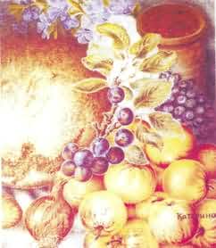 Зовсім інше ми бачимо в народнуй художниці Катерини Білокур. Вона малювала олійними фарбами, але її матовий живопис, фарби не блищать, дрібні мазки, часто проступає полотно, фон чистий, колір синій або блакитний.