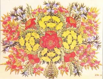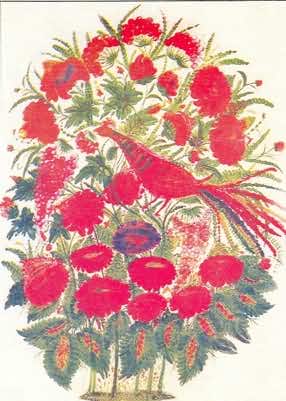 Орнаментальність - першооснова народного декоративного мистецтва, а симетрія у ній є закономірністю організації кольорових плям і мас. У Марії Примаченко і композиція, і колір несуть глибоке змістовне навантаження. У зображенні квітів простежується нерозривний зв'язок Марії Примаченко з народною уявою про добро і красу в народному фольклорі.