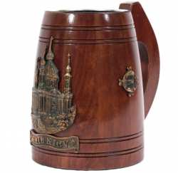 Дерев'яний кухоль з металевою колбою всередині, з нержавеючої сталі, щоб сохранити прохладу і свіжість напитку. Зовні декорована металевими елементами.