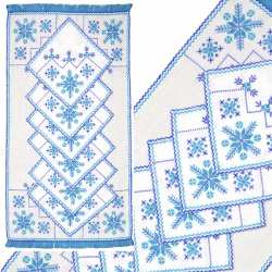 Серветки з такою вишивкою являють собою ідеальне поєднання сучасного етнічного дизайну. Візерунки, вишиті на серветках, розташовані по краю. В комплект входить одна велика серветка і 6 маленьких.